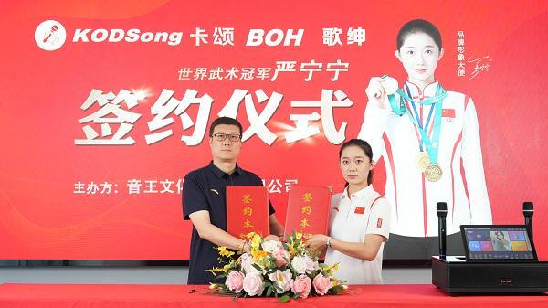 2025年7月18日,音王文化(深圳)有限公司旗下核心点歌机品牌KODSong 卡颂、BOH、歌绅正式签约“世界健身健美冠军赵婉羽”和“现役世界武术冠军严宁宁”二人担任品牌形象大使。此次合作标志着音王文化在品牌升级与市场拓展上迈出关键一步,进一步强化了其“专业、创新、卓越”的品牌形象。